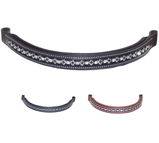 Majestic Ally Curved Crystal Padded Premium Leather English Browban...