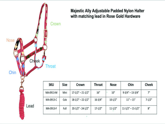Majestic Ally Halter with Matching Lead Rope for Horses–Adjustable ...