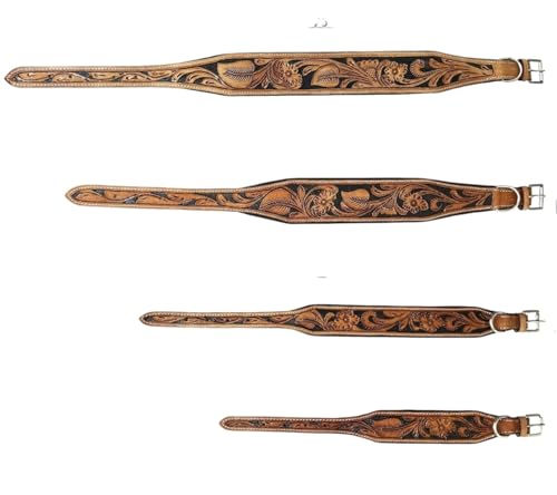 Majestic Ally Hand Tooled Leather Dog Collar, Floral Design, Colore...