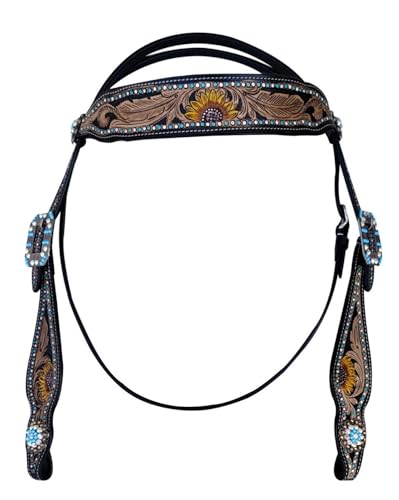 Majestic Ally Hand-Tooled Designer Padded Leather Horse Browband He...