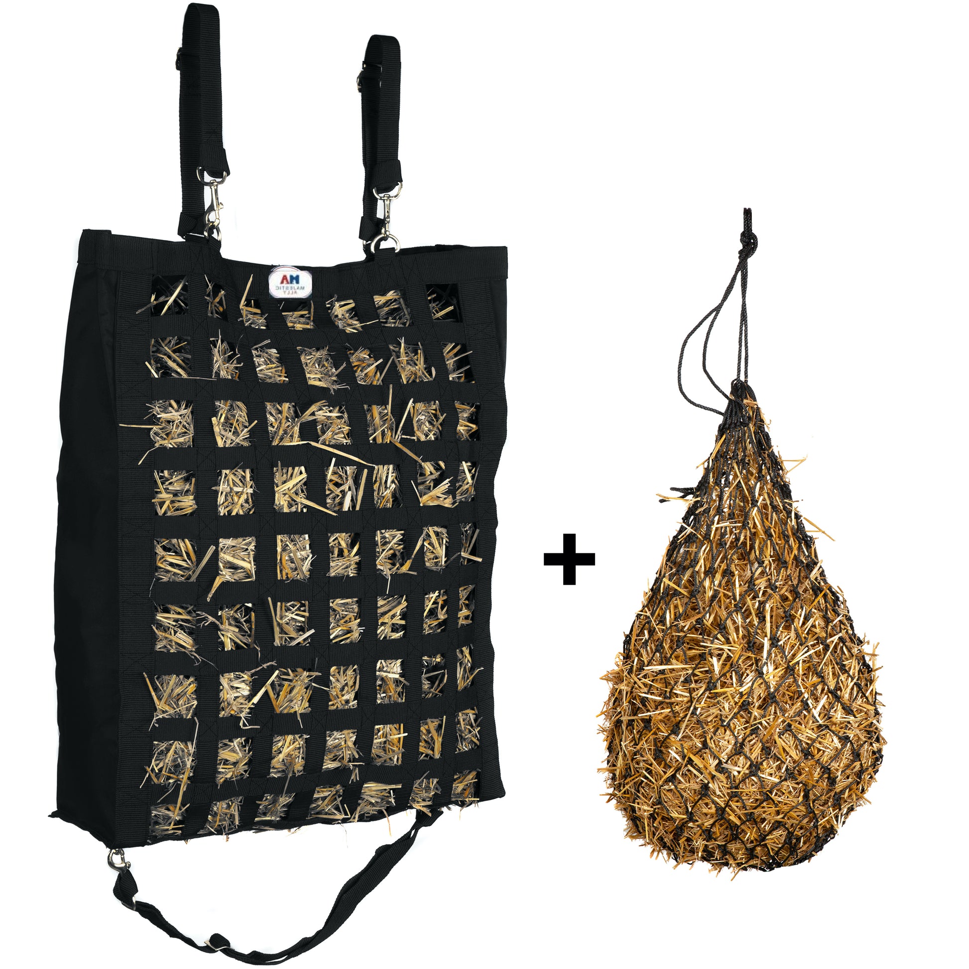 - Complimentary Hay Net with Bag –We've also included a 42-inch long hay net with 2"x2" holes with our hay feed bag, making it easier to store extra dry hay in the barn, stall, trailer, or anywhere else you need additional feed for horses.