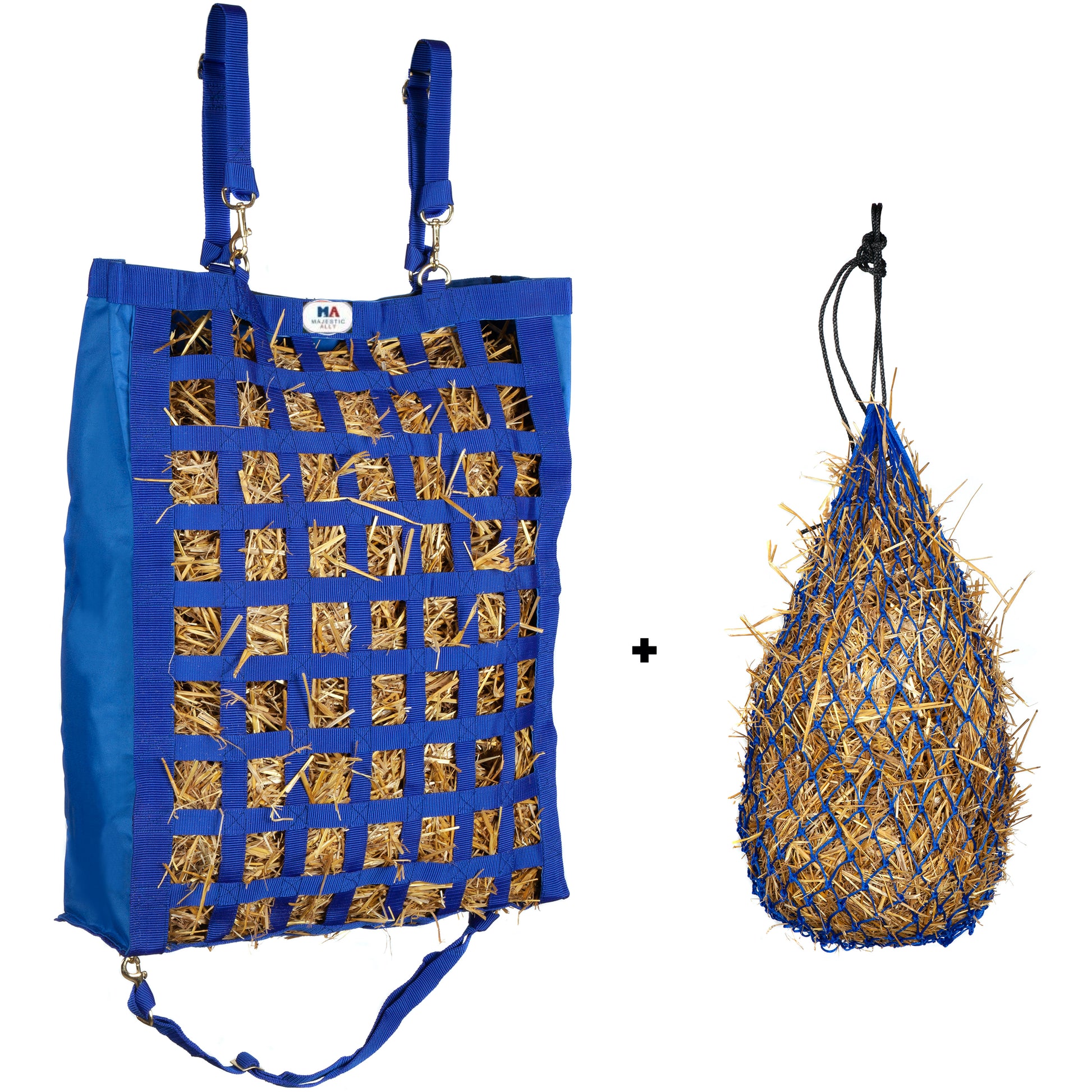 Get this premium hay bag with a complementary Hay Net to provide your horses with slow, natural grazing in the stall or on the go, ensuring improved digestion and less wasted hay. Click "Add to Cart" above to secure yours now.
